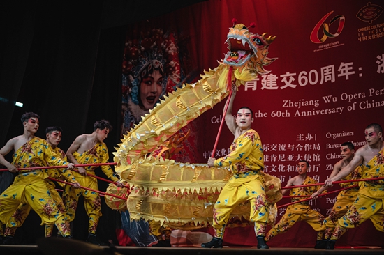 9月5日,婺剧演员在肯尼亚首都内罗毕表演。为庆祝中肯建交60周年,浙江婺剧专场演出5日晚在肯尼亚首都内罗毕上演。婺剧俗称“金华戏”,是浙江省地方戏曲剧种之一。2008年被列入国家级非物质文化遗产名录。新华社记者 王冠森/摄