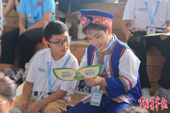 9月15日,参加2023年中国—东盟少年儿童手拉手活动的少年儿童互赠结对卡。中青报·中青网记者 谢洋/摄