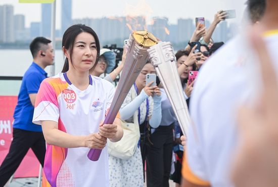 9月20日,火炬手郭晶晶在火炬传递中。
