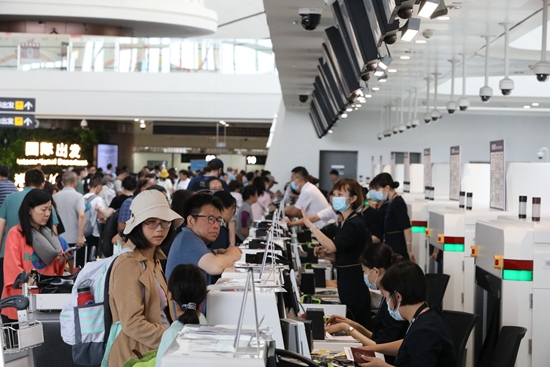 “今年暑运期间,北京大兴国际机场旅客量快速增长。7月进出港旅客量达397万人次,环比增长17%。8月6日单日旅客量超过15.5万人次,创历史最高纪录。”大兴机场宣传部负责人介绍,“我们还新增及恢复9条国际及地区航线,进一步扩展了东亚、东南亚、中东地区市场。截至8月31日,本年度进出境旅客量累计突破100万人次。”