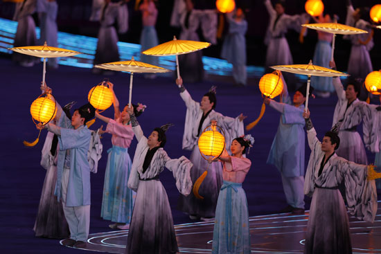 9月23日,浙江杭州,杭州奥体中心体育场,第19届亚洲运动会开幕式上,文艺表演现场。中青报·中青网记者 李隽辉/摄