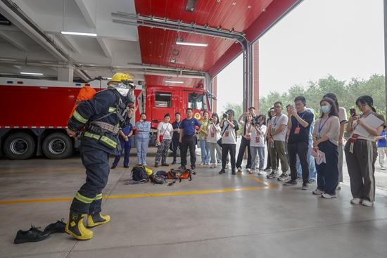 大学生们参观国家危险化学品应急救援武汉基地。付松/摄