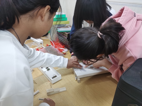 学生在做鳞翅目标本。