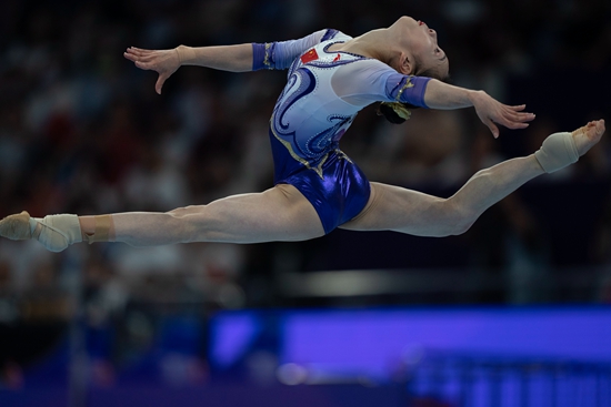 9月27日,中国选手章瑾在杭州亚运会体操女子个人全能的平衡木比赛中。视觉中国供图