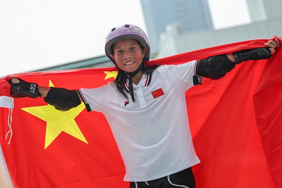当日,在钱塘轮滑中心举行的杭州亚运会女子街式决赛中,中国选手崔宸曦以242.62分的成绩夺得冠军。新华社记者 潘昱龙/摄