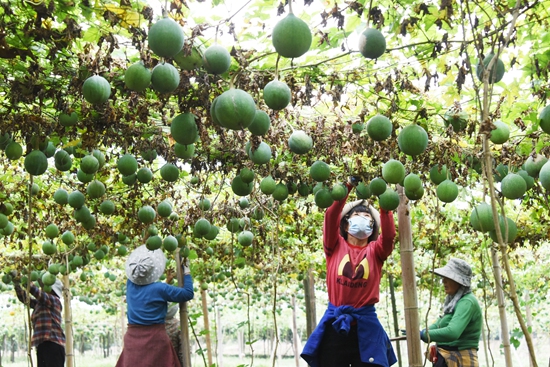 10月10日,在湖南省常德市澧县澧南镇高堰村,村民在采摘全瓜蒌。