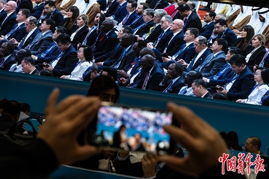 10月17日,北京国家会议中心,第三届“一带一路”国际合作高峰论坛企业家大会现场进行签约仪式。近300位中外代表现场签署合作协议,项目涵盖基础设施、清洁能源、人工智能、生物医药、金融服务、现代农业、轨道交通等多个领域。中青报·中青网记者 曲俊燕/摄