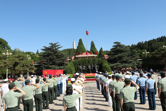 学院组织学员在西柏坡纪念馆七届二中全会旧址前举行“从西柏坡出发”仪式。国防大学联合作战学院供图