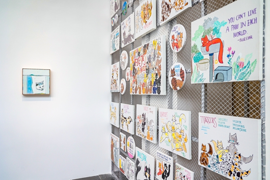 “如镜之书:15位艺术家与孩子的对话”展览现场,唐永祥与女儿唐郢泽画笔下的猫。UCCA尤伦斯当代艺术中心供图