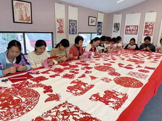 湖南省桃江县桃花江镇大华村的剪纸技艺传习社里,当地志愿者带着孩子们利用周末时间练习剪纸技艺。桃江县近年大力传承“桃花江剪纸”非遗品牌,并通过青年志愿服务加大面向青少年的传承力度。超政/摄