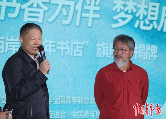 10月25日,“真青春·活出彩·书香为伴·梦想启航”活动现场,中国报告文学学会副会长李青松(左)和台湾知名作家蓝博洲作为特邀嘉宾,分别发言。中青报·中青网记者 陈剑摄