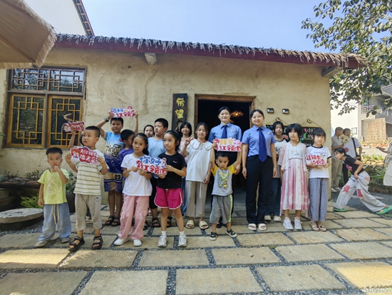 9月9日,湖北罗田县三里畈镇新铺村苍葭冲乡村希望书屋,来自县人民检察院的检察官们为孩子们讲解未成年保护知识后,合影留念。湖北罗田县三里畈镇团委供图