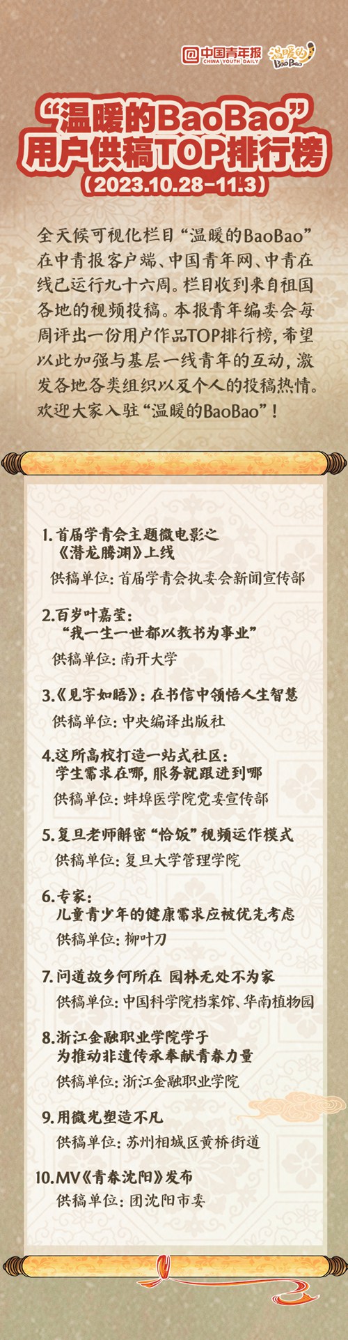 “温暖的BaoBao”用户供稿TOP排行榜