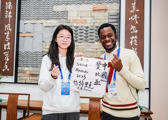 •     11月4日,大连。参加全球发展青年先锋交流营活动的青年代表在大云书库美术馆体验中国传统文化。