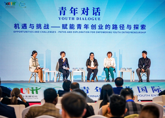 •     11月3日,大连。在青年创业国际论坛青年对话环节,与会的专家学者以线上线下结合的方式,就当前青年创业所面临的挑战和机遇展开讨论。