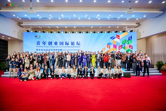11月3日,大连。青年创业国际论坛与会嘉宾合影。