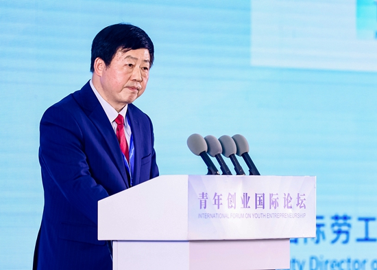 11月3日,大连。国际劳工组织中国和蒙古局副局长戴晓初在青年创业国际论坛上致辞。