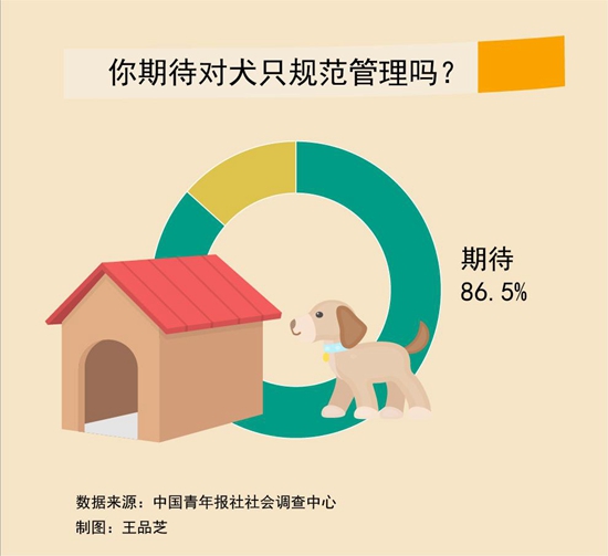 文明养犬是文明社会的体现,也是每个养犬人的责任和义务。近日,中国青年报社社会调查中心联合问卷网(wenjuan.com),对1000名受访者进行的一项调查显示,86.5%的受访者期待规范犬只管理。66.5%的受访者指出遛狗时应及时清理犬只粪便,60.4%的受访者认为要定期为狗进行体检和疫苗接种。