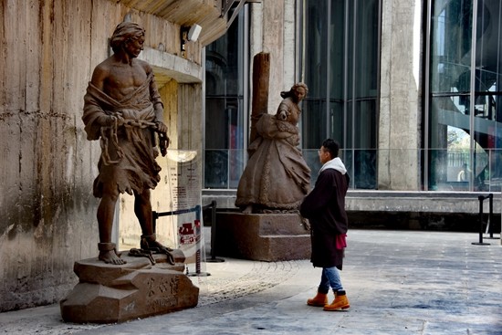 11月15日,观众在西藏美术馆参观雕塑作品。