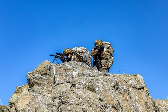 狙击小组占据制高点提供火力支援。刘爽/摄