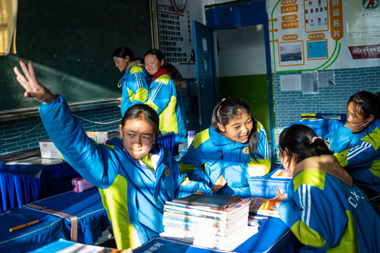 近年来,西藏全面落实农牧民子女“上学无负担”措施,农牧民子女受教育水平显著提升。党的十八大以来,西藏已八次提高经费标准,累计投入了220.67亿元,受益学生数量达到655.08万人次。目前,“三包”政策每年每个学生平均经费已经达到4200元,学生可以享受到的资助政策达到42项。新华社记者 孙非/摄