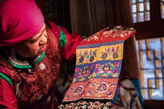 罗易成曾在刚下完雪的青海省互助县,见到了青海土族盘绣的传承人、年近60岁的席玉秀。