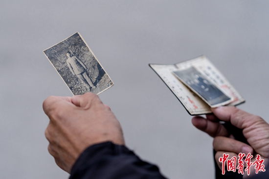 11月23日,辽宁沈阳桃仙国际机场,第十批在韩中国人民志愿军烈士遗骸迎回仪式现场,74岁的郑继烈老人拿着父亲郑文阁的照片,讲述了父亲在朝鲜战场久盼一张全家福合影,却因牺牲未能如愿的故事。