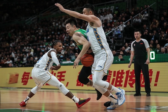北京北汽队外援埃文斯(左一)因表现不佳,饱受批评。新华社记者 潘昱龙/摄