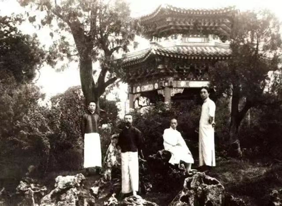 梁漱溟与北京大学同事在北京中山公园,左起为雷国能、李大钊、梁漱溟、张申府。中国文化书院供图