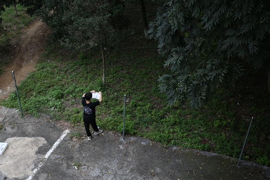 8月8日清晨,安徽安庆,安庆师范大学龙山校区,一名暑期留校备战考研的学生将书本放在晾衣绳上背书。据教育部网站近日消息,2024年全国硕士研究生考试报名人数较上一年减少36万人。这是自2016年以来连涨8年后,考研报名人数首次下降。陈东/摄