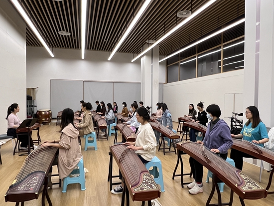 一些年轻人在上海市民艺术夜校上古琴课。上海市群众艺术馆供图