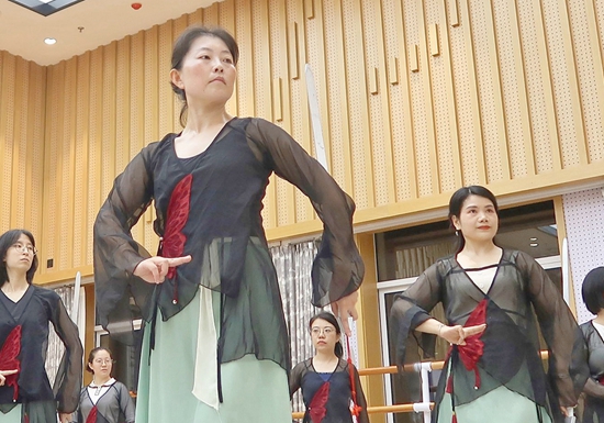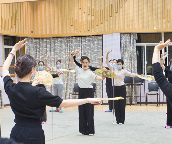 一些年轻人在夜校学习淮剧团团扇课程。上海市群众艺术馆供图