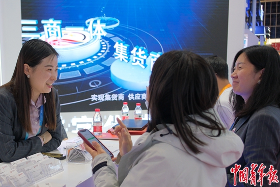 11月30日,北京,中国国际展览中心,参展商正在与前来咨询合作的客户交流沟通。