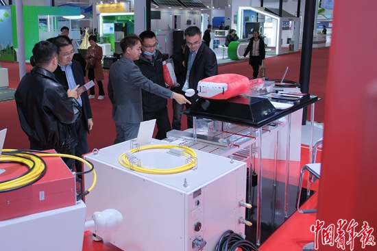 11月30日,北京,中国国际展览中心,参展商正在向前来咨询的客户介绍产品。