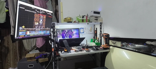 出租屋里,“问号”的写字台就靠在床边,桌面胡乱堆放着除尘器、改锥、胶水等,还有两个电脑显示屏,其中一个用钢架托到半空中,自制的键盘支架让他可以直接躺到床上工作。那段时间,他每天晚上八九点钟开始处理打印件,接着黏合、组装、打磨,干到早上五六点钟才睡,中午爬起来装盒、打包和贴单,直到快递员上门——忙12小时,最多可以生产10把“香蕉刀”。