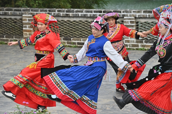 12月5日,在广西苍梧县木双镇与广东省封开县大洲镇交界的5号界碑小公园,两地村民在排练节目。