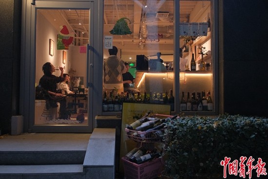 朝阳区的一家酒吧新开设了葡萄酒品鉴夜校课,由获得国际认证的专家级品酒师讲授。范凯琳与陈映玥都是第一次来上课,一见如故。她们把自己定义为不善交友的“i人”(内向的人——编者注),“但喝酒之后,感觉就可以(聊)了”。