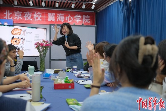 近一两年,夜校风潮在城市中“复兴”,吸引了越来越多的年轻人。当今夜校在社会功能上,已与几十年前的传统夜校有很大不同。绘画老师、北京斑马市民夜校主理人宋琰觉得,现在夜校的教学方向已从职业技能向兴趣拓展转变。年轻人通过接触艺术、文化等各个领域的课程,拓宽知识面,满足精神生活的需求。同时,夜校也为他们提供了一个社交平台,结识志同道合的朋友。各类夜校课程五花八门,平均几十元一节的课程,也让想报名的年轻人没有负担。