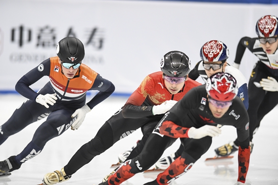 当日,2023-2024赛季国际滑联短道速滑世界杯北京站男子1000米决赛在首都体育馆举行。新华社记者 陈钟昊/摄