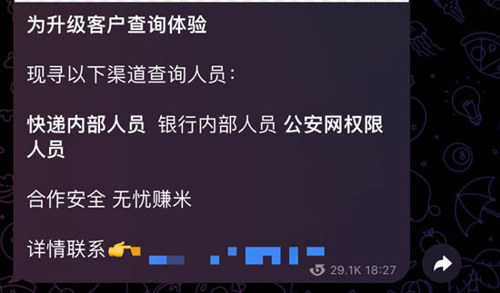 在一个14万人的“开盒”群组,不法分子招揽“内部人员”。受访者供图