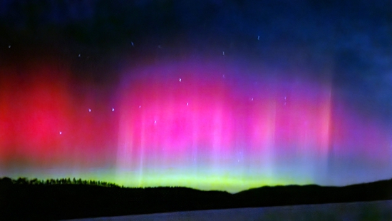 值得一提的是,中纬度极光大多是红色的,而不是我们印象中常见的绿色,但是这两种颜色的极光又都是由氧原子内的电子跃迁产生的,所以是什么导致它们的颜色不同呢?其实就是氧原子的能量和所处的海拔不同。中纬度极光位于250千米-400千米的高度,而极区极光位于100千米左右的高度,这也使得中纬度极光的能量比极区极光的能量要低,能量与波长是成反比的,所以中纬度极光的波长比极区极光的波长要长,也就是从波长较短的绿光变成了波长较长的红光。在12月1日漠河出现的极光中,能看到绿色,这很大程度上说明此次地磁暴事件非常强烈。