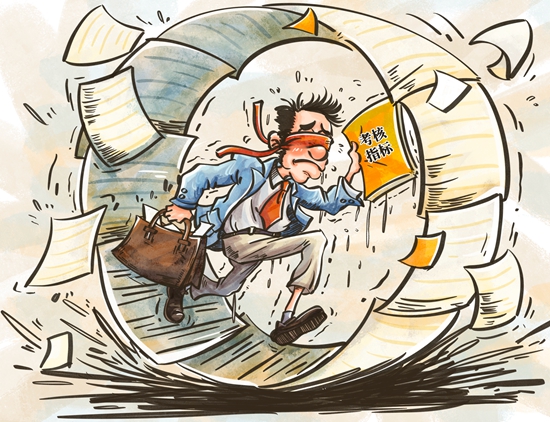 有媒体调查发现,在基层工作中存在考核指标泛滥和形式主义问题。这导致干部负担过重,大量时间耗于繁琐文书,很多基层工作不得不在指标考核指标中“打转儿”。考核指标压力导致基层过分重视留痕,这种形式主义工作浪费资源,且消耗干部工作热情,影响其精神状态。减少繁杂的表格和指标,重视工作实效,为基层干部提供更优环境,让年轻干部能更专注于有效工作,更好地服务社会。漫画:程璨