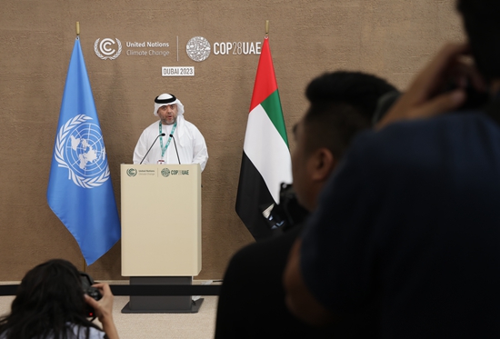 当地时间12月12日,阿联酋迪拜,《联合国气候变化框架公约》第二十八次缔约方大会( COP28)进入第12天,COP28总干事马吉德·苏瓦伊迪在新闻发布会上呼吁与会各方代表“卷起袖子”,尽快拿出新的最终协议案文。