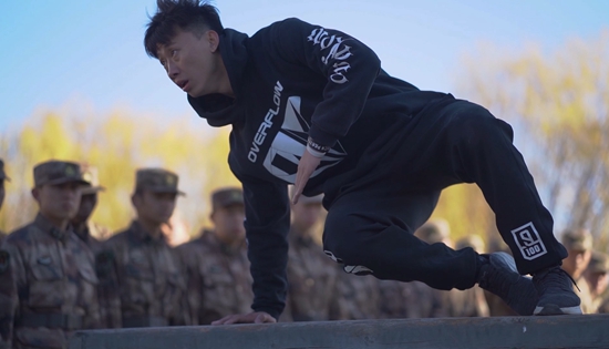 王卫强受邀到部队讲授跑酷技巧。王卫强/供图