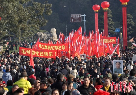 12月26日,湖南韶山毛泽东铜像广场,各界群众等候参加向毛泽东铜像敬献花篮仪式。当日是毛泽东同志诞辰130周年的纪念日,在毛泽东同志家乡韶山,各界群众参加向毛泽东铜像敬献花篮仪式。中青报·中青网记者 陈剑/摄