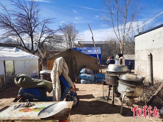 地震后,9间房子都不能入住,一家人安葬好亲人,在房子对面的空地上搭建帐篷,建起临时的“家”。