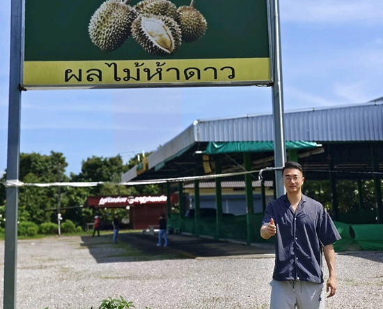 陈秉政在国外考察水果基地。受访者供图