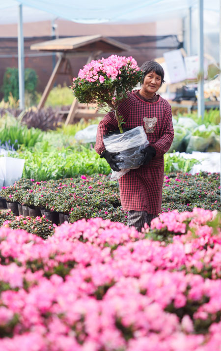 1月4日,浙江省金华市金东区澧浦镇花卉苗木城的商户在摆放年宵花卉。金东区花卉苗木栽培历史悠久,是全国重要的花木产区。元旦过后,澧浦镇花卉苗木城内,600余家花卉苗木商户开始展销不同品种的年宵花,1000多个品种的年宵花卉供市民、游客挑选。新华社记者 徐昱/摄