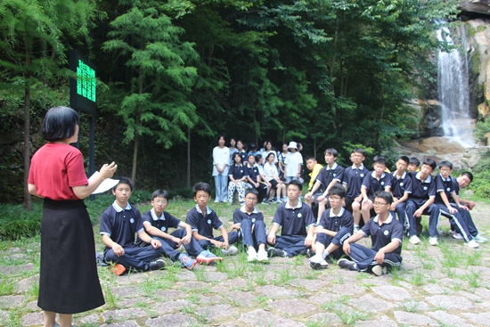 “石梁班”师生在天台山石梁风景区开展“唐诗之路”研学实践。