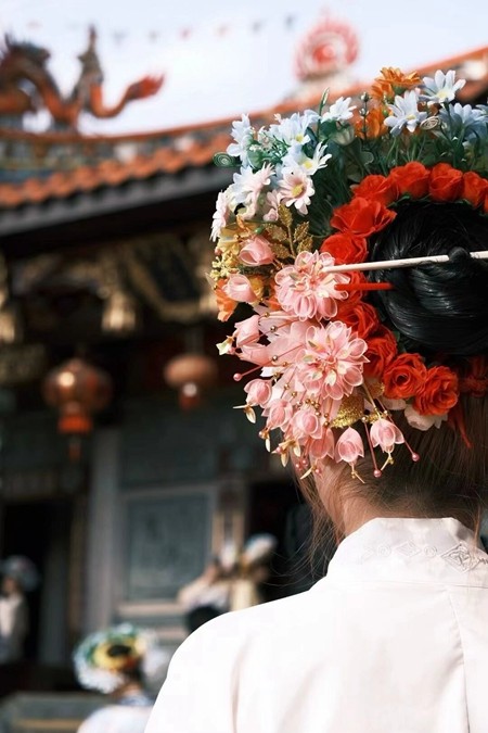 蟳埔女:“体验非遗项目,做半日簪花女孩”。蟳埔女保留了丰富的闽南传统习俗,爱戴花是“蟳埔女”的天性,蟳埔女头上的簪花围,是泉州海洋文化的缩影,体现了蟳埔女的勤劳质朴,以及对美好生活的热爱。仰恩大学 陈雅静/摄